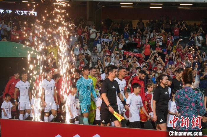 英格兰足球超级联赛劲旅曼彻斯特联队(简称“曼联”)时隔12年再访港,为香港接下来的多场足球盛事拉开帷幕。在曼联访港前,香港一足球会在铜锣湾时代广场举办曼联球衣珍藏展,展出众多曼联球星及名宿签名球衣,为曼联与中国香港足球代表队(简称“中国香港队”)进行的表演赛“预热”。5月30日,部分曼联球员在比赛前的下午出席活动与香港球迷见面,其中曼联球星阿马德·迪亚洛(Amad Diallo)、科比·梅努(Kobbie Mainoo)及曼努埃尔·乌加特(Manuel Ugarte)到访位于尖沙咀的运动品牌旗舰店,活动开始前店外已有不少曼联球迷聚集,气氛相当热闹。当日黄昏,香港铜锣湾前往香港大球场的路上,有球迷手持曼联会徽的旗帜,冒雨前行。表演赛也在雨中进行,虽然天公不作美,但球迷情绪高涨,超过3.3万人到场观赛,观众席呐喊声不断。曼联与中国香港队冒雨鏖战90多分钟,最终曼联以3:1逆转战胜中国香港队。图为曼联与中国香港队球员步进球场。中新网记者 陈永诺 摄