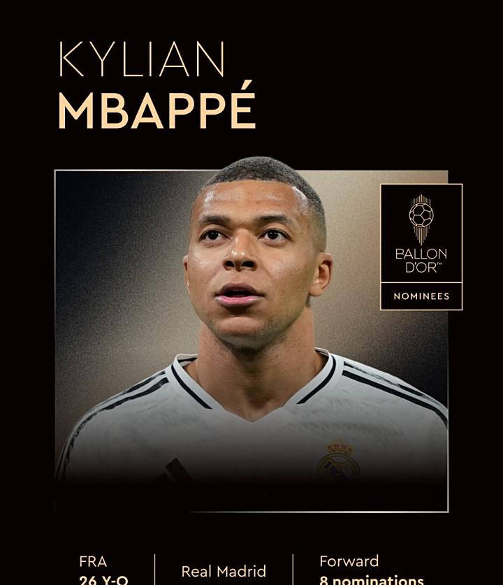 附注:姆巴佩历届金球排名为: